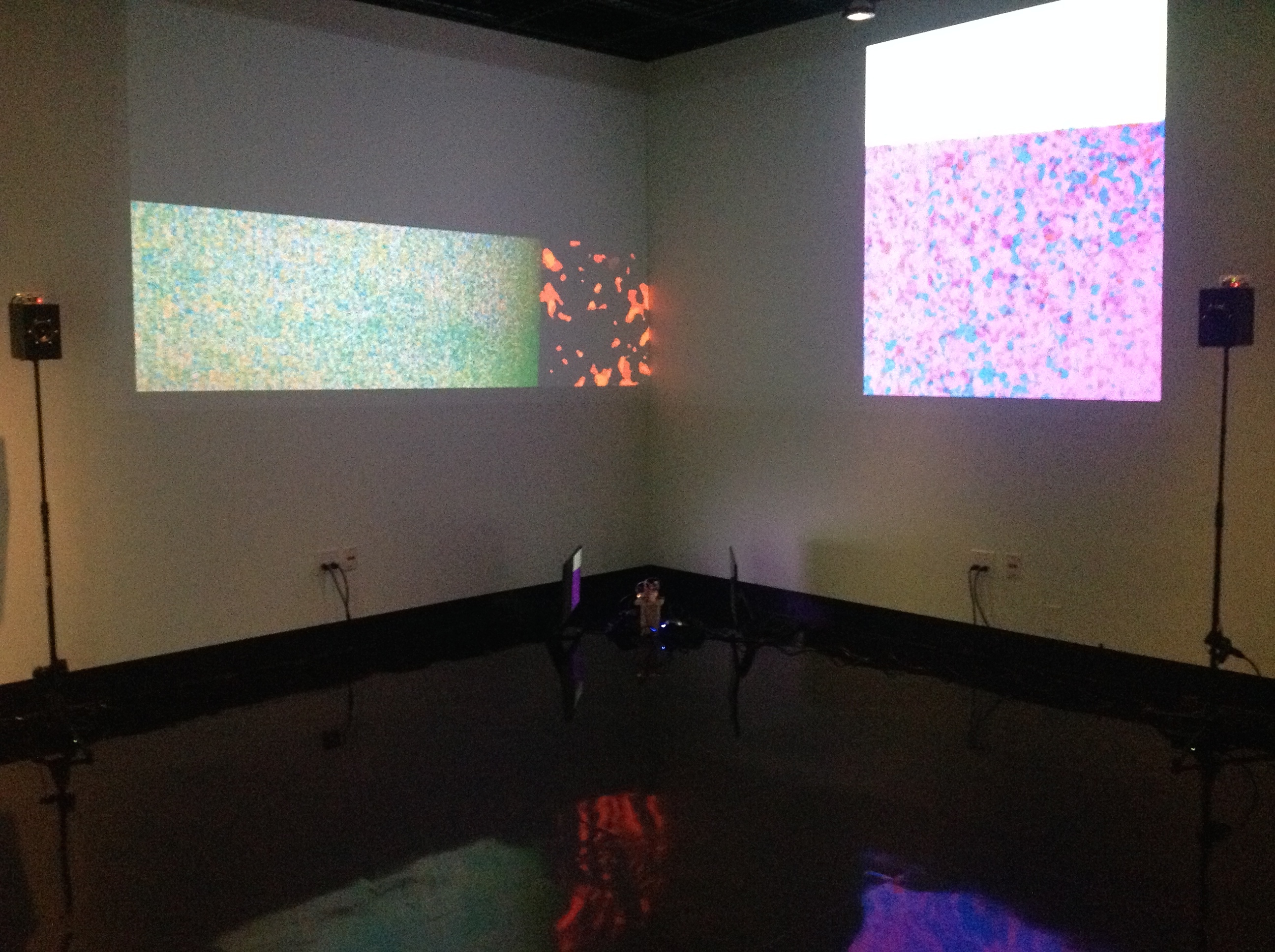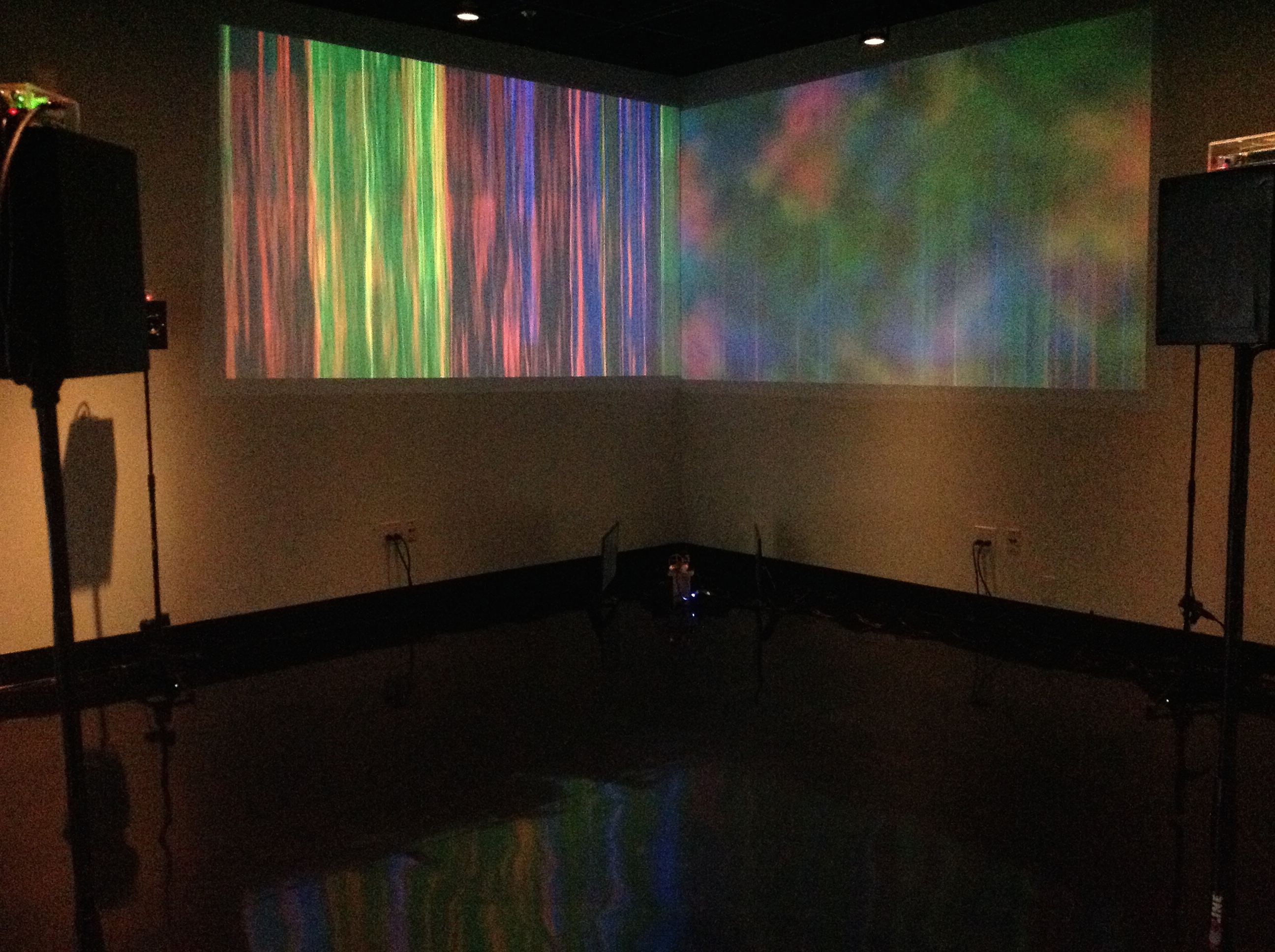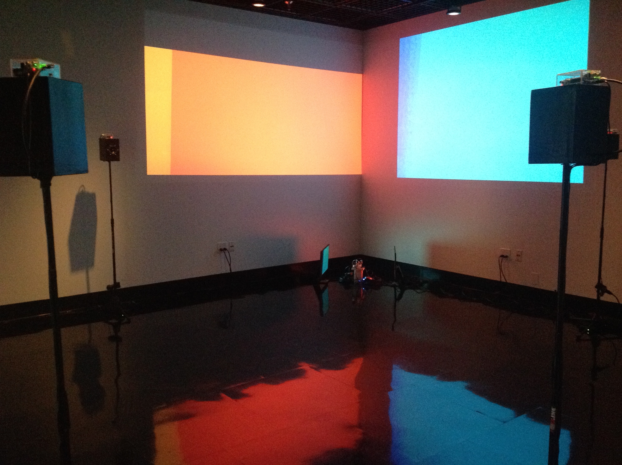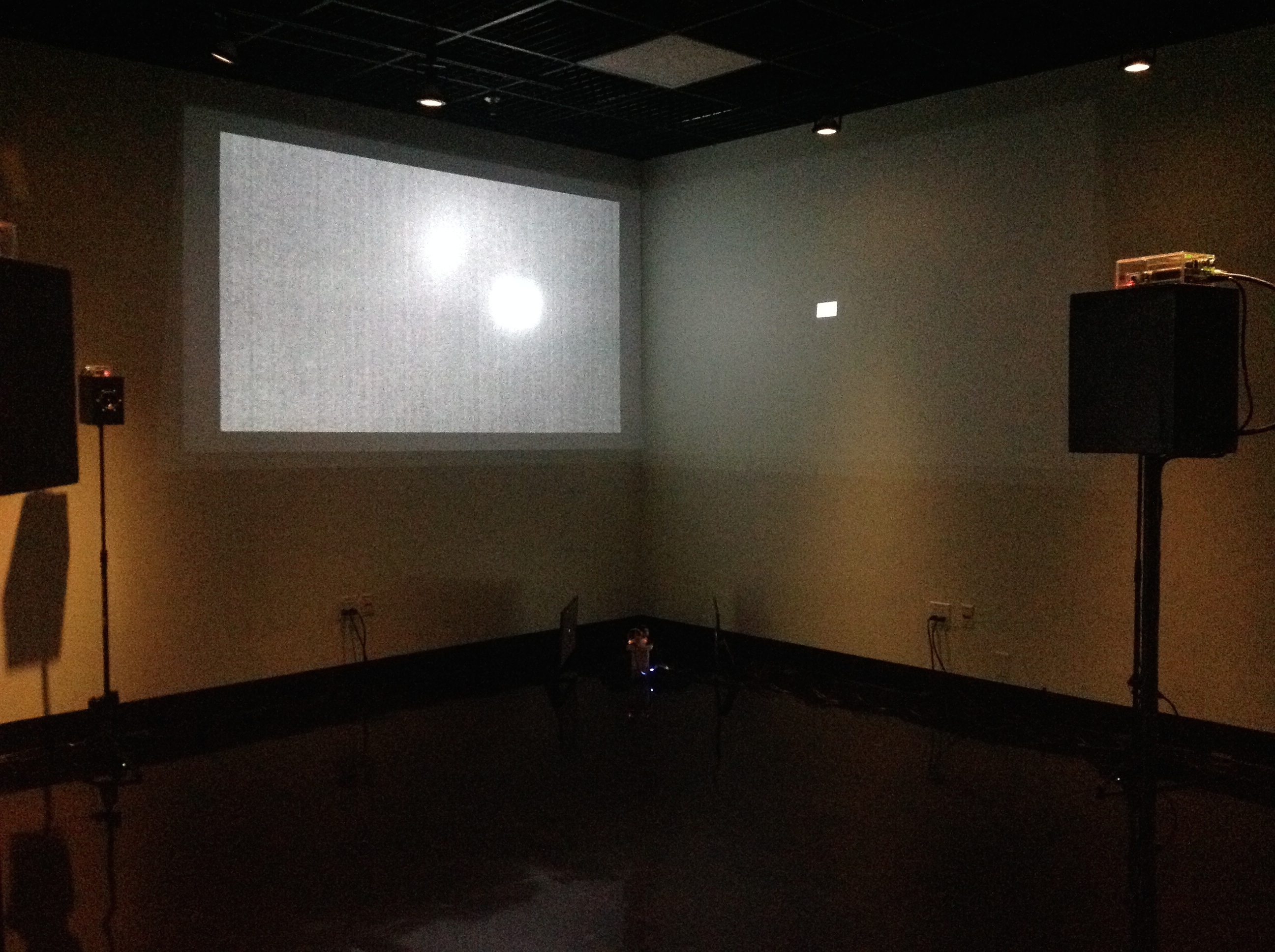 PiAV is a multi-sensory sound installation driven by stochastic processes to create an ever-changing audio-visual experience. The complete system is cross-pollinated: Combinations of pitch-clusters and samples influence the abstracted visual images created from code inspired by traditional analog video feedback techniques. In return, the color spectra and motion velocity within the visual images influence the sound processing creating a meta-feedback system. The piece cycles through a series of scenes that vary from dronelike, contemplative clusters to riotous bursts of sound and energy.
