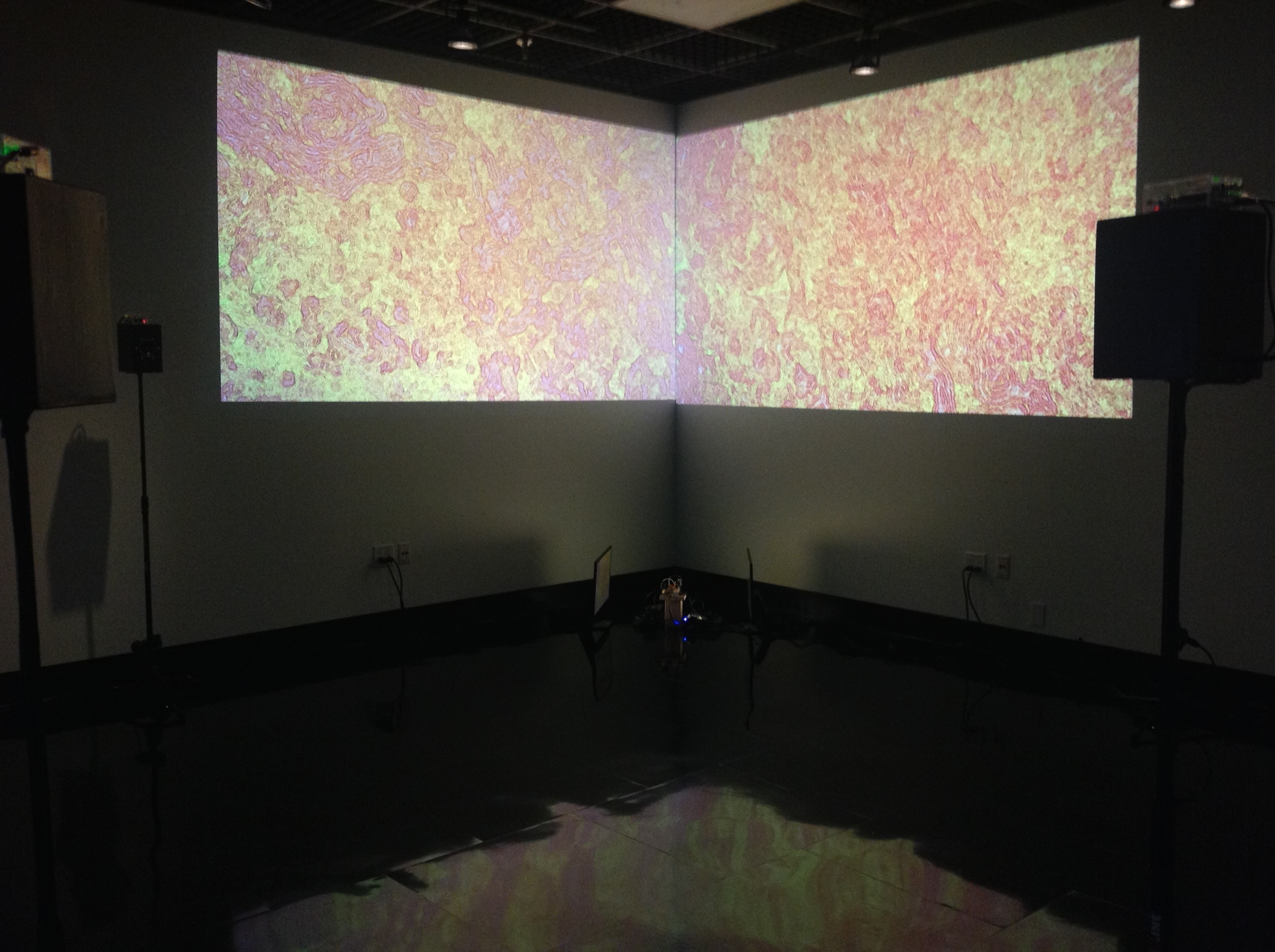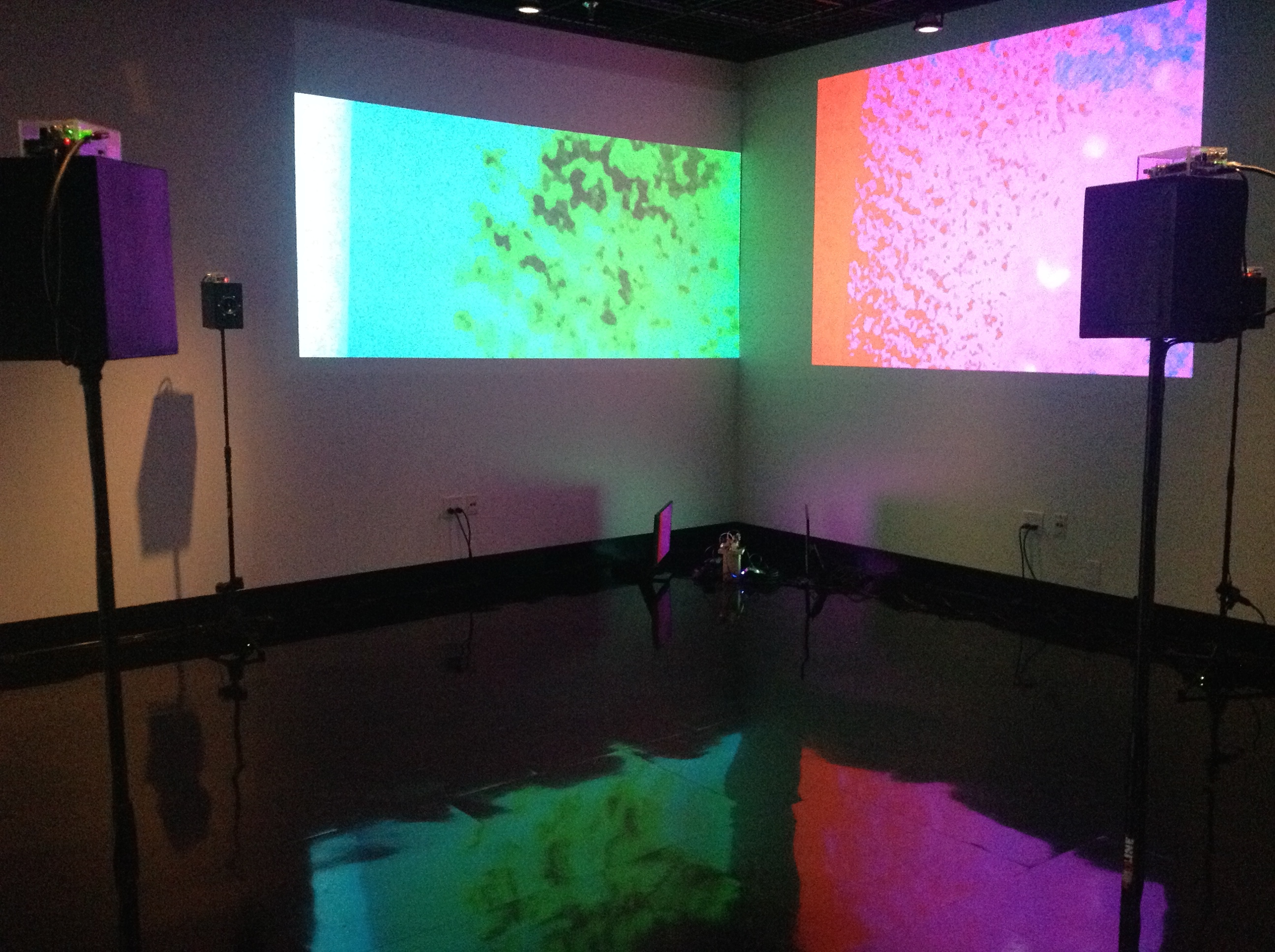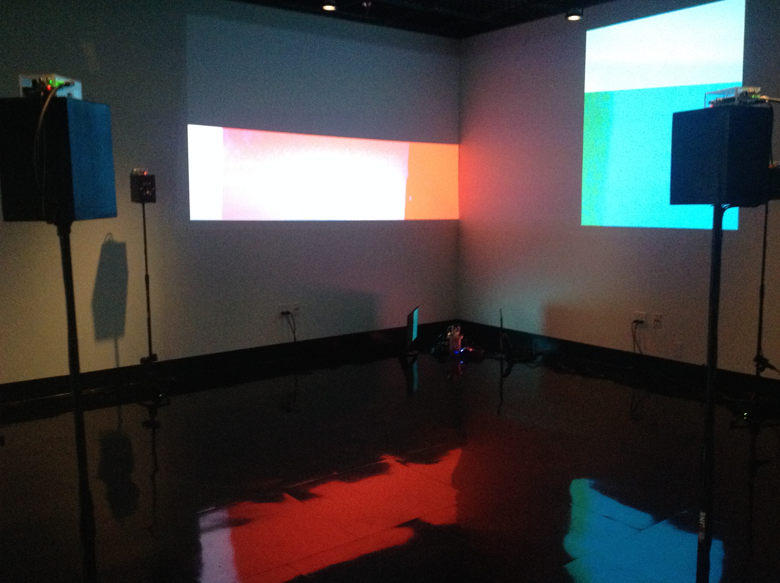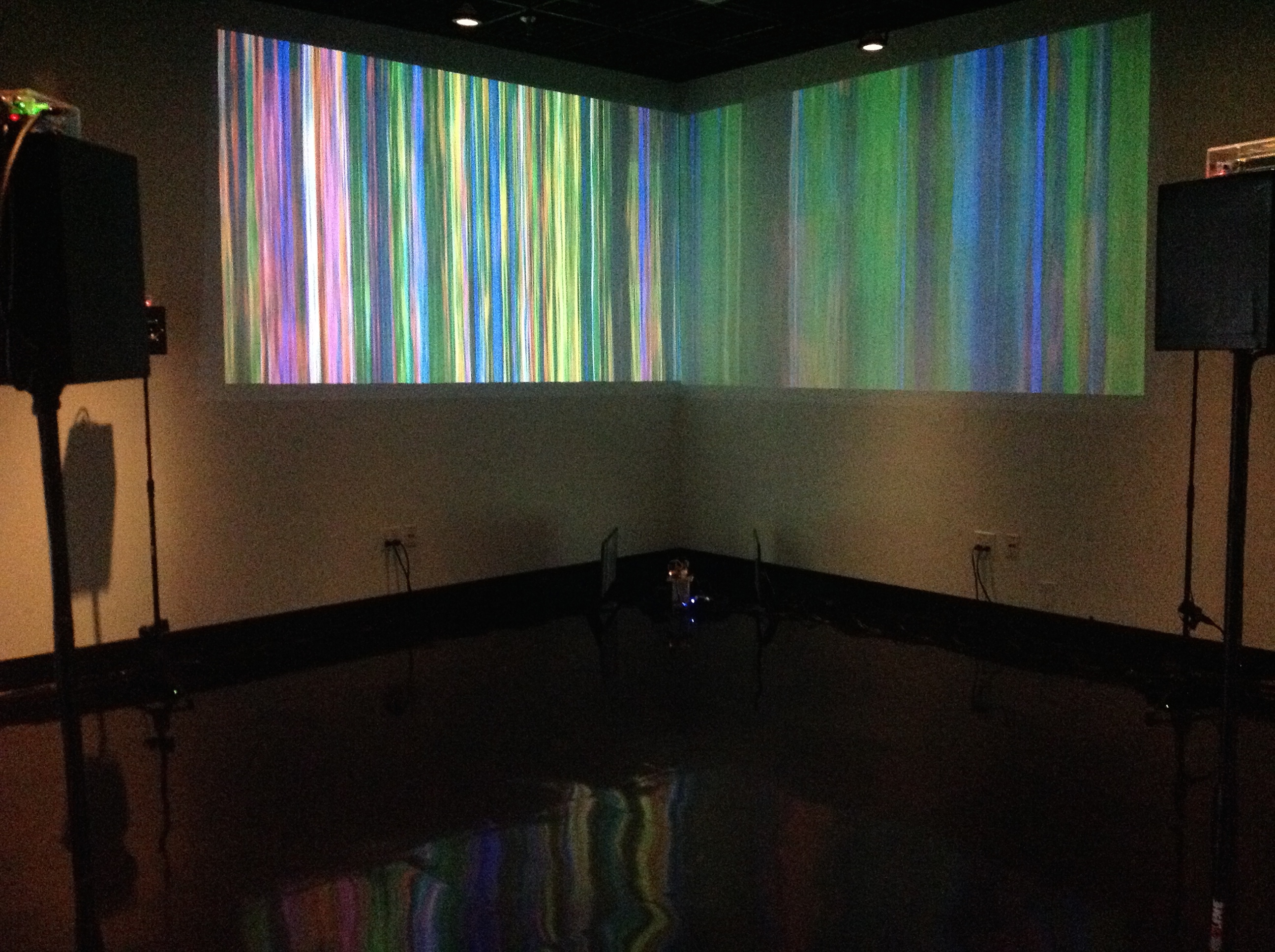 PiAV is a multi-sensory sound installation driven by stochastic processes to create an ever-changing audio-visual experience. The complete system is cross-pollinated: Combinations of pitch-clusters and samples influence the abstracted visual images created from code inspired by traditional analog video feedback techniques. In return, the color spectra and motion velocity within the visual images influence the sound processing creating a meta-feedback system. The piece cycles through a series of scenes that vary from dronelike, contemplative clusters to riotous bursts of sound and energy.